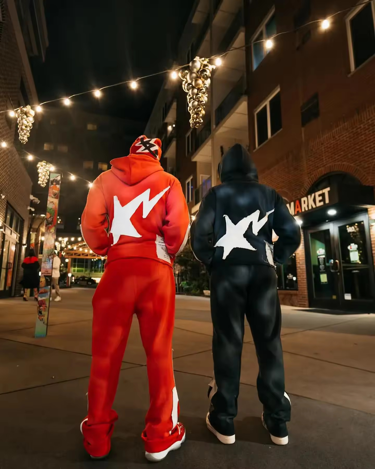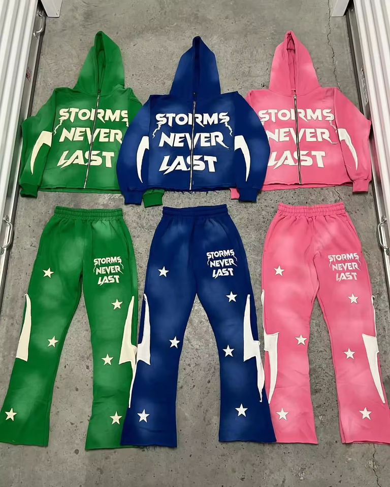 OEM ODM Custom Streetwear Tracksuit Plus Size Full Zip up French Terry Cotton Puff Print 450GSM Men's Hoodie Set