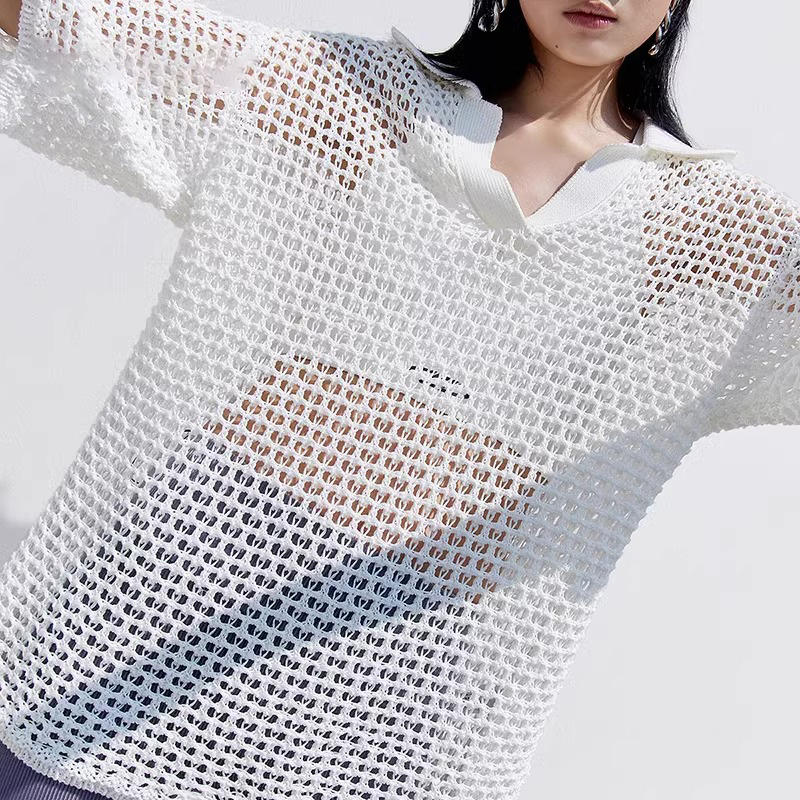 OEM & ODM Custom Summer Short Sleeve Half-Cardigan for Women POLO Collar Fragrant Wind Woven Casual Argyle Pattern With LOGO