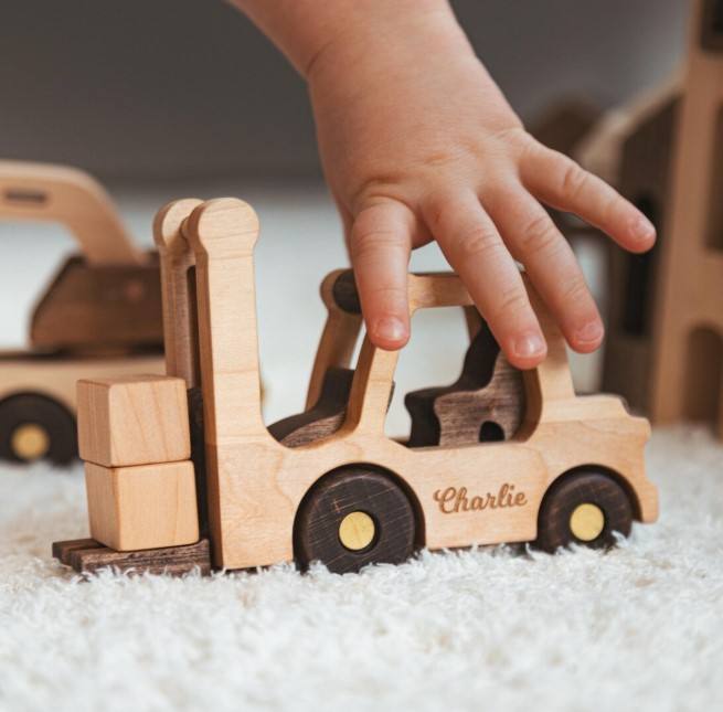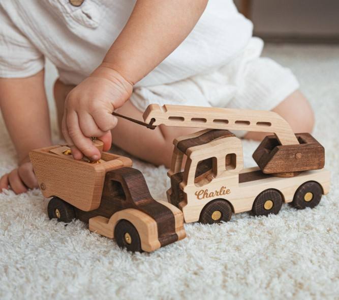 OEM ODM Customizable Eco-Friendly Wooden Excavator Toys First Christmas 1st Birthday Floor Personalized Construction Vehicle