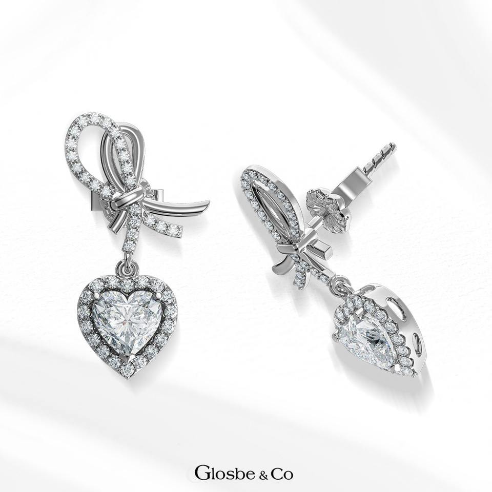 OEM ODM Customized Design Heart Bow Moissanite Diamond Stud Earrings 6mm Yellow Gold White Gold Rose Gold Glosbe