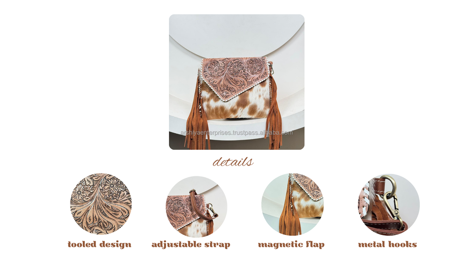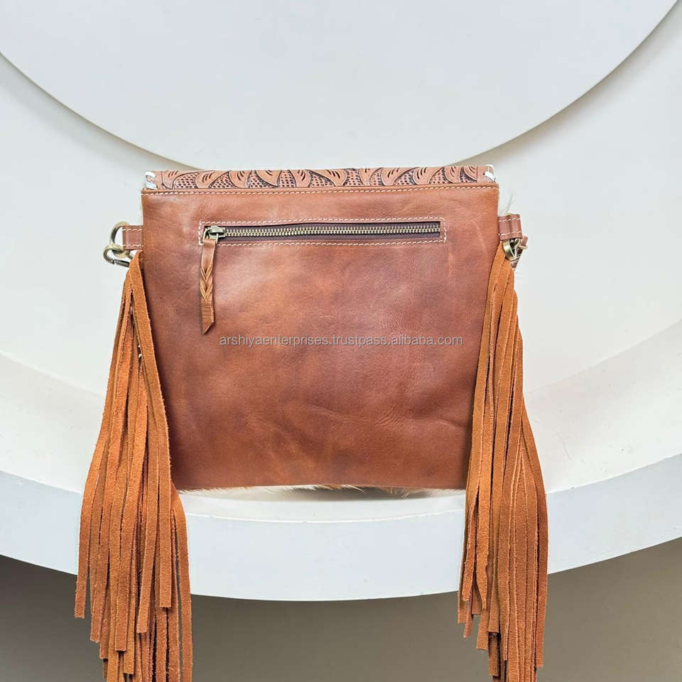 Product name:Hand Tooled Cowhide Leather Fringe Crossbody Bag