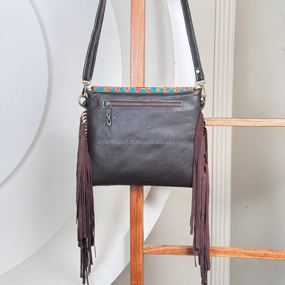 OEM ODM Customized Wholesale Women Hand Tooled Leather Envelope Fringe Crossbody Bag High Quality Designer Cowhide Shoulder Bags