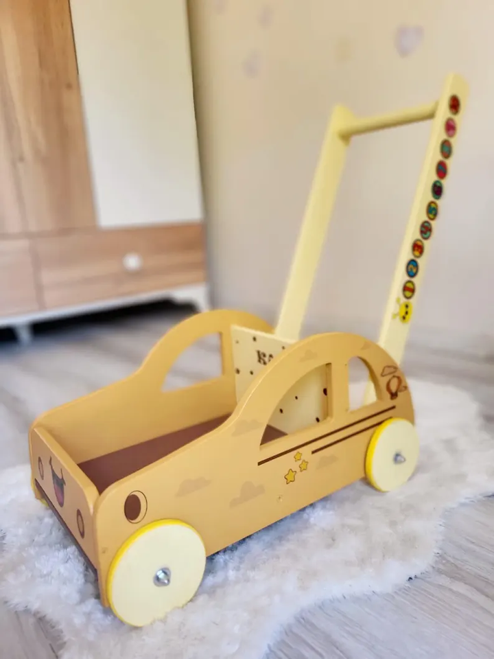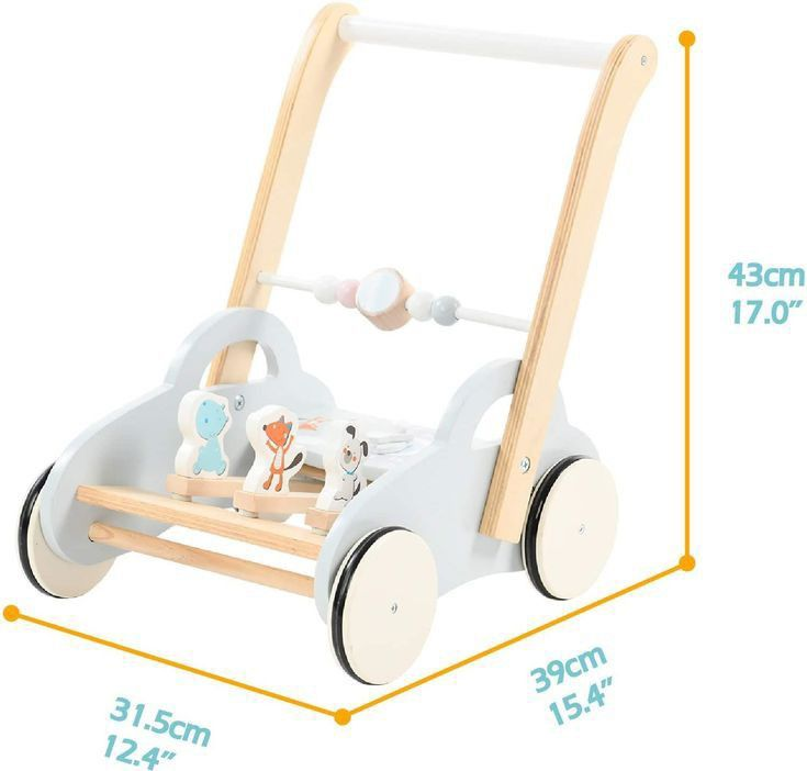OEM ODM EN-71 factory Baby Blue Wooden Push Walker Activity Blocks Trolley Car Toys for Children