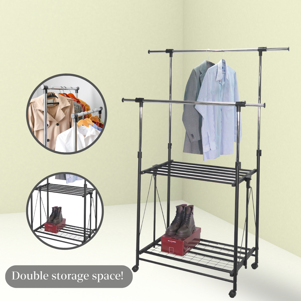 OEM ODM Easy Foldable Double Shelves Clothing Rack with Shoes Shelf