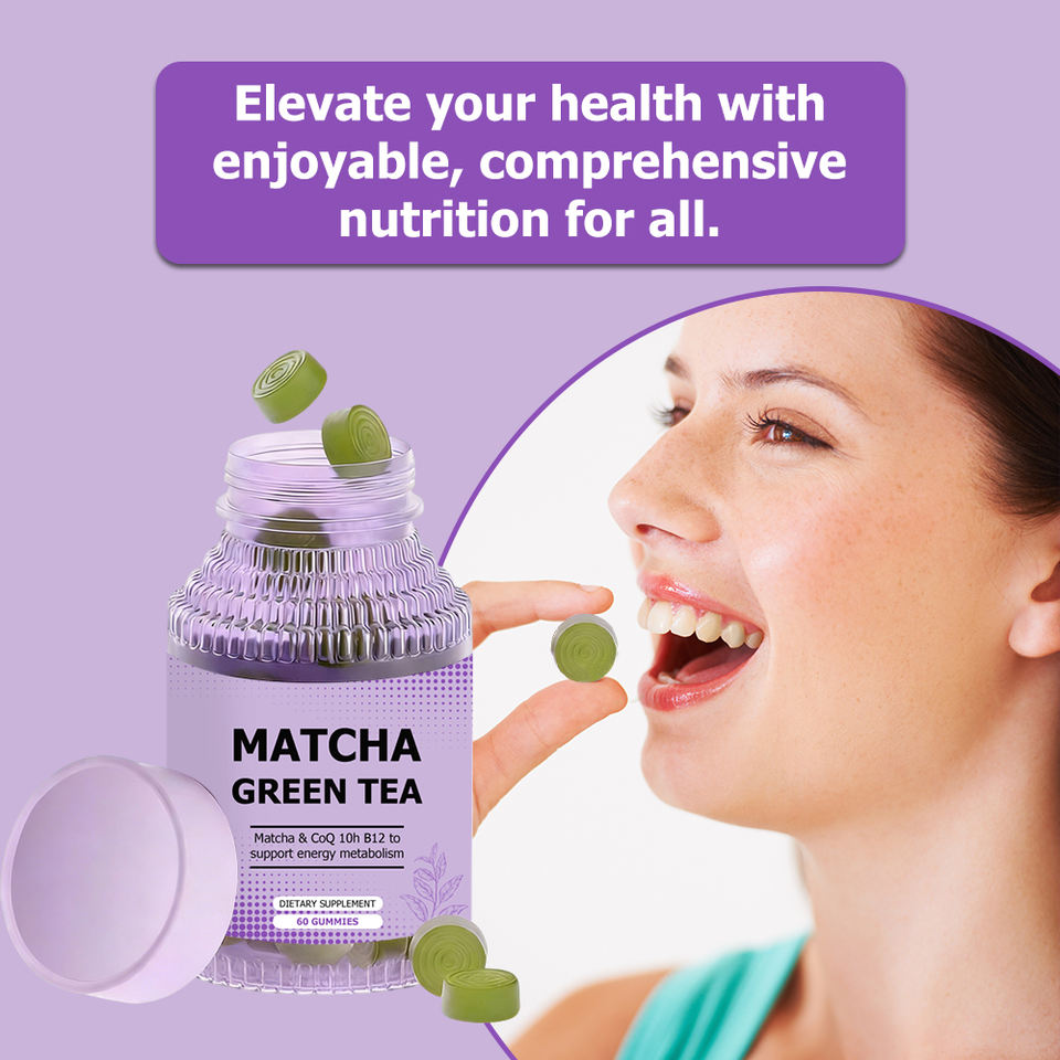 OEM ODM Factory Vitamin B12 Matcha Green Tea Gummies Coenzyme Q10 Dietary Supplement Support Energy Enhance Green Tea Leaf Candy