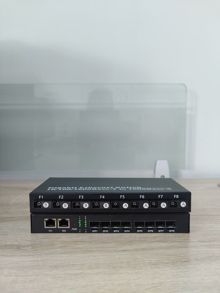 OEM&ODM Gigabit Fiber Media Converter Dual Fiber 8 Fiber Optic Switch + 2 Rj45 Port SC 10/100/1000M Optical Fiber Transceiver
