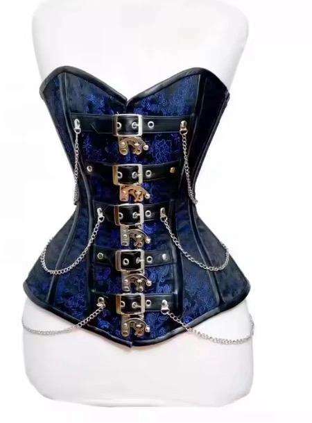 OEM ODM Gothic Lace Wedding Waist Trainer Front Busk Bust Cups Bustier Steel Boned Shapers Clasp Closure Hanging Chains Feature