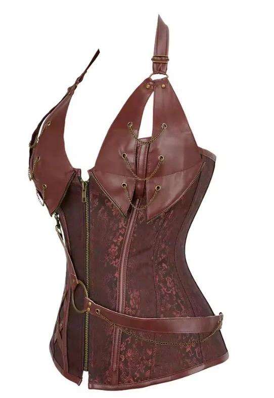 OEM & ODM Gothic Waist Trainer Steel Boned Shapers Front Busk Zip Closure Breathable Woven Bustier Modesty Panels Eyelet Laces