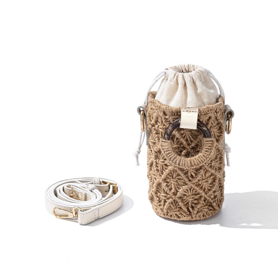 OEM ODM Handwoven Crochet Jute Mini Bag Drawstring Pouch Adjustable Leather Strap Boho Summer Crossbody Bag Made in Bangladesh