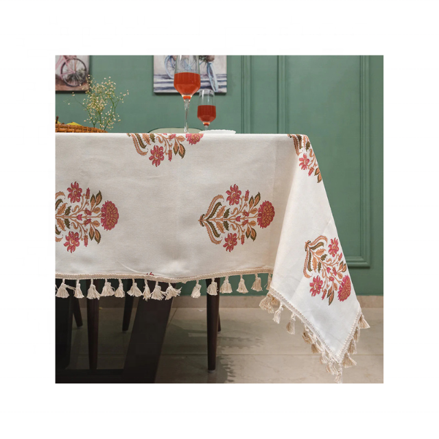 OEM ODM High Luxury Jacquard Hand Made Quick Dry 100% Cotton Embroidered Green 4ft Tablecloth for Family Gatherings and Dining