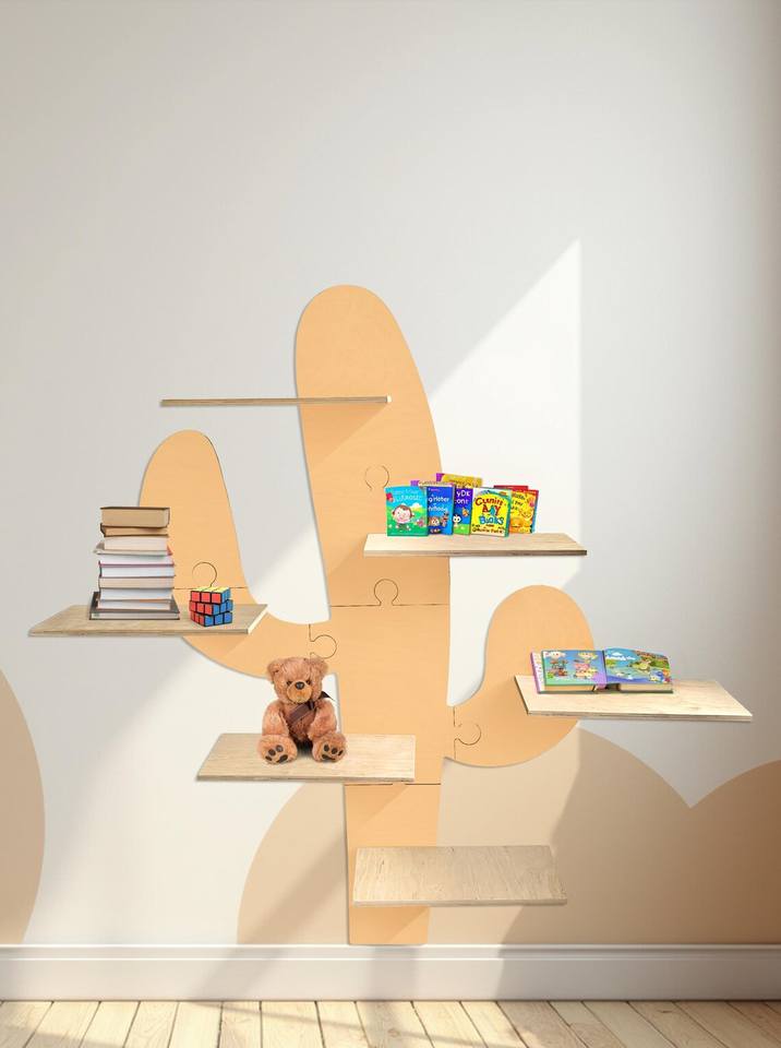 OEM ODM Large Vertical Wooden Bookshelf Handmade Tree Cactus Bookshelf Nursery Wall Storage Hanging Wall Toy Chest Organizer
