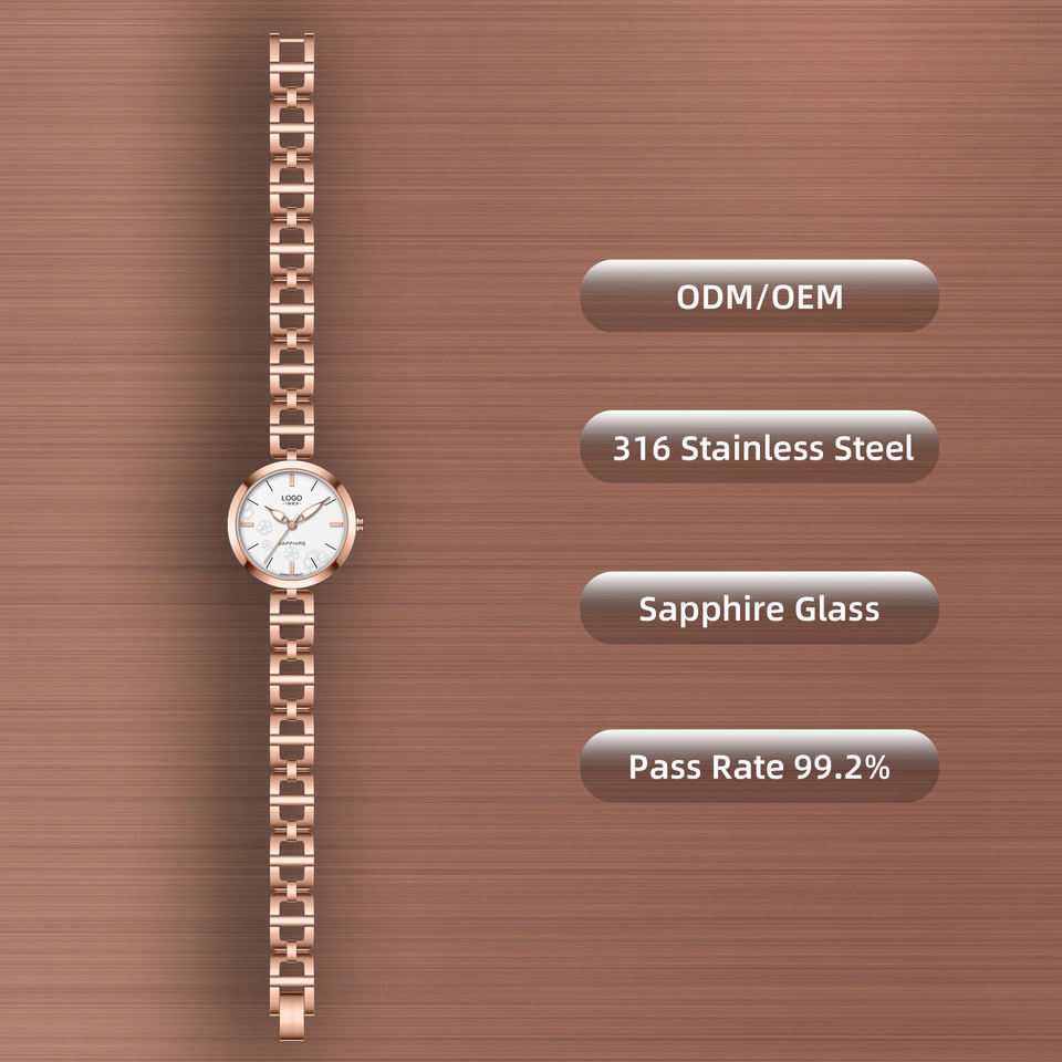 OEM ODM Logo Customizable Luxury Women's Stainless Steel Quartz Watch Japan Movement Small Glass Pointer Bracelet Antique