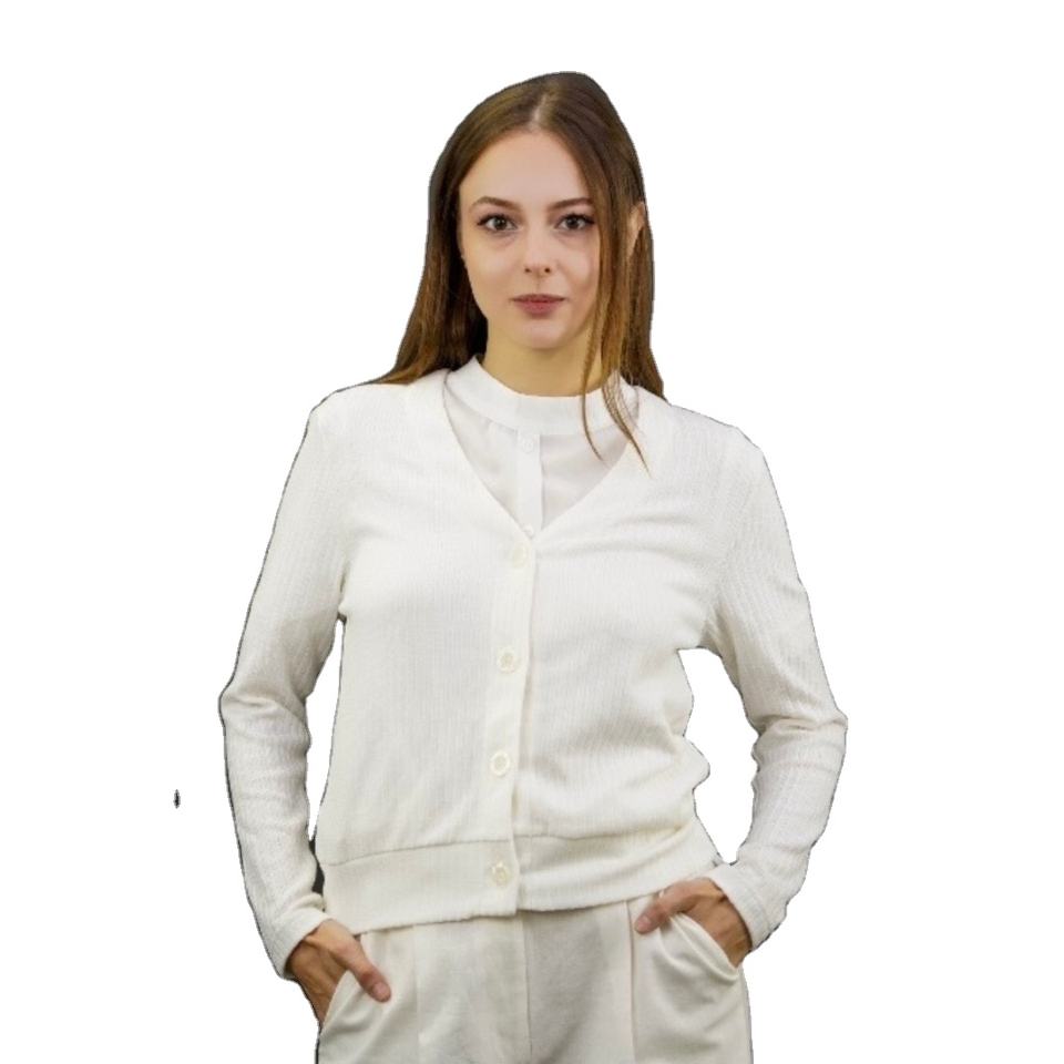 OEM ODM Long Sleeve Cotton Women Cardigan White Fabric Wholesale from Thailand Factory Solid Casual Clothing