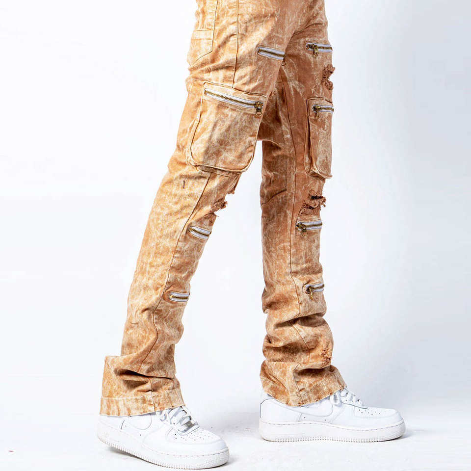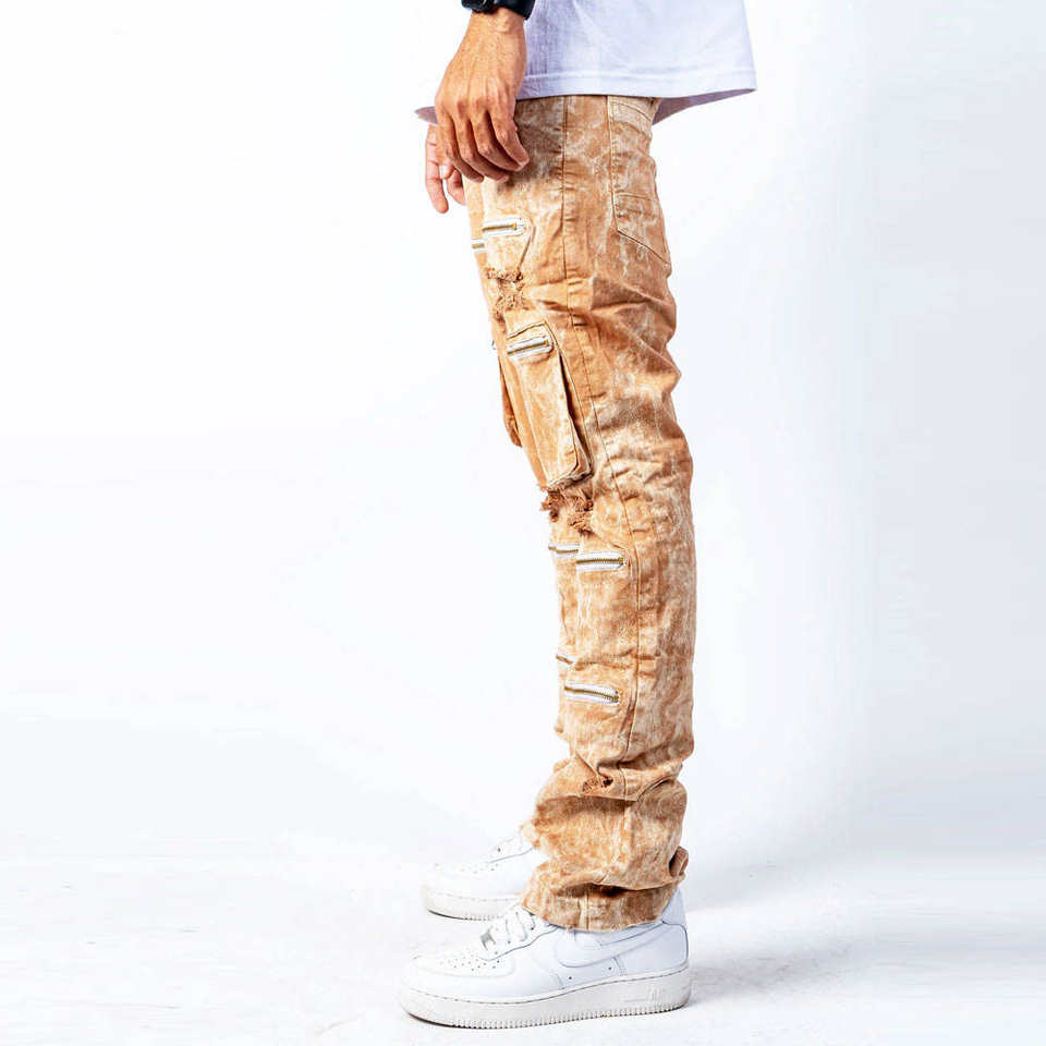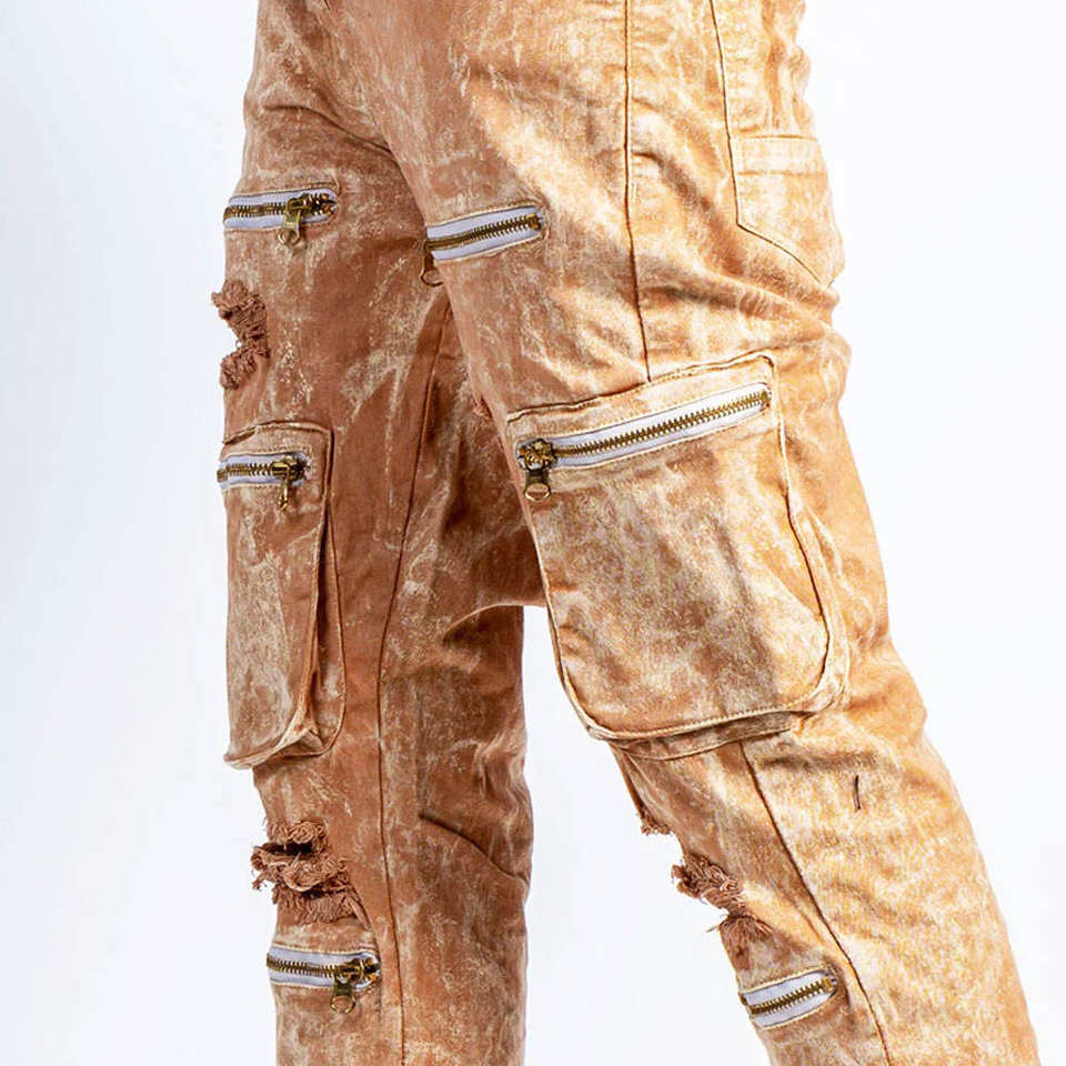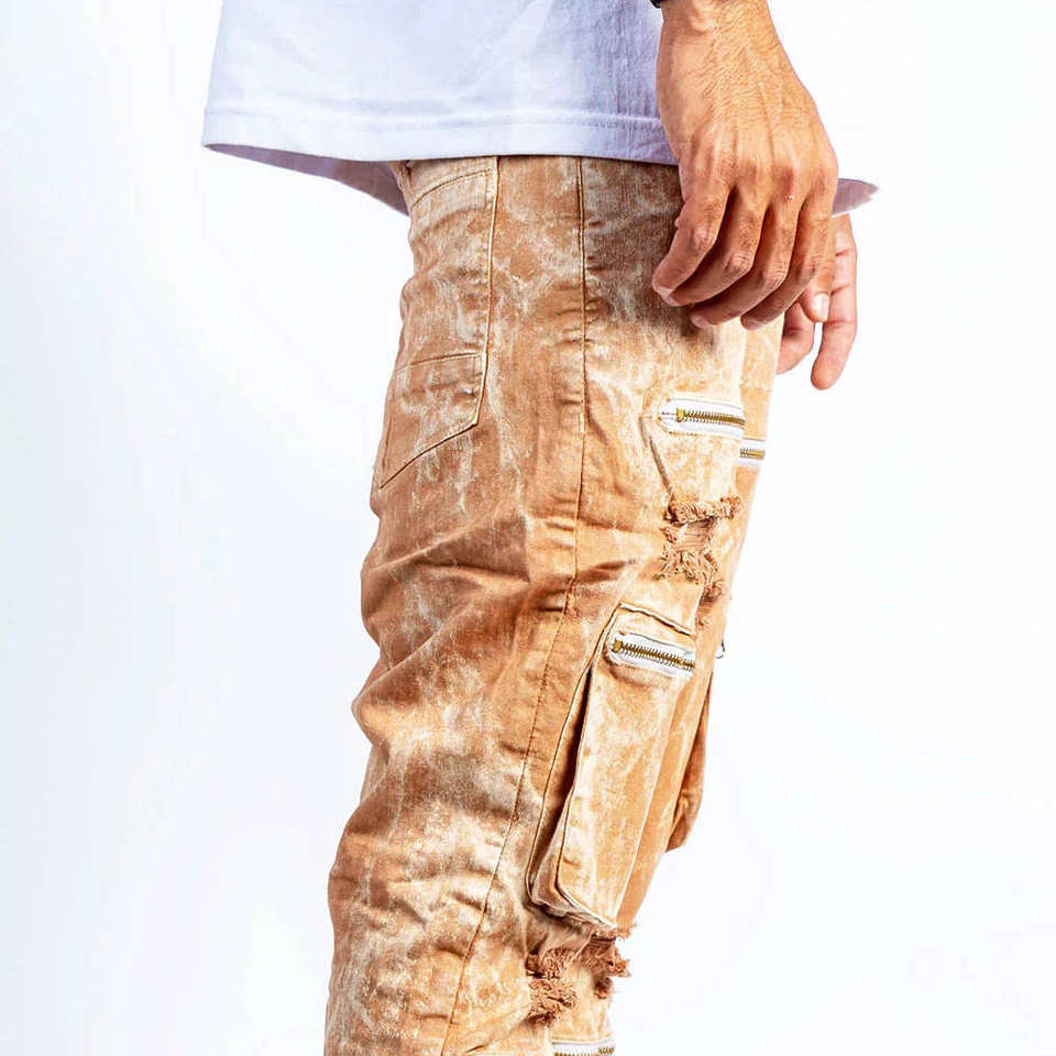 OEM ODM Men Fashion Cargo Pants Streetwear Distressed Zipper Design Multi Pocket Casual Trousers Stylish Hip Hop Jeans