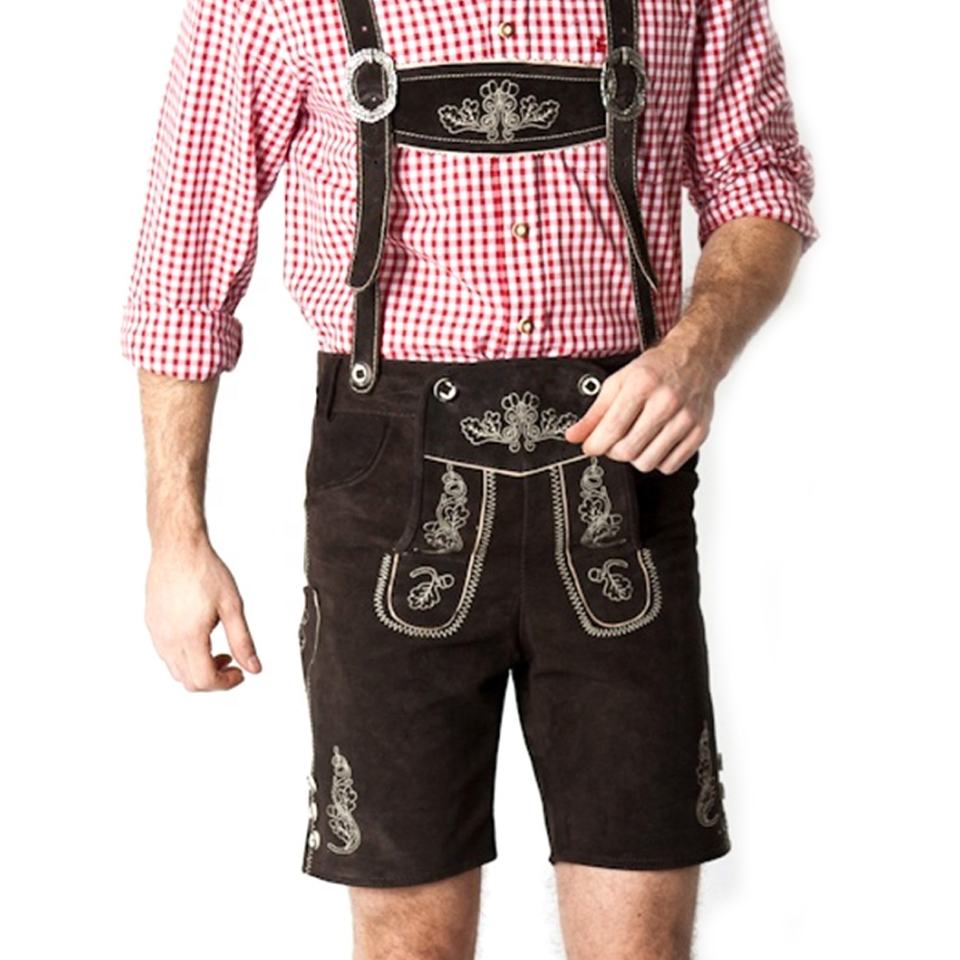 OEM/ODM Men's Bavarian Lederhosen 100% Leather Pants with Button Fly Closure Custom German Traditional Lederhosen Knee Shorts