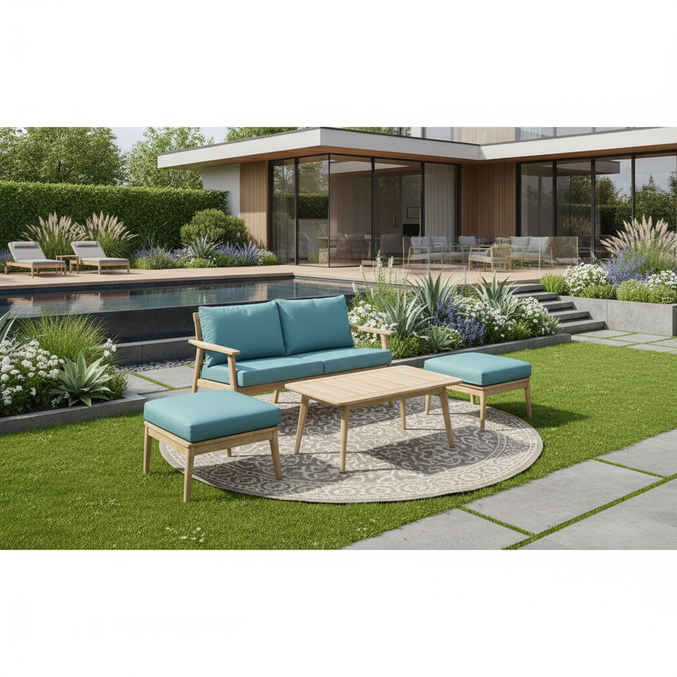 Acacia wood frame Polyester cushion cover with foam filling.material