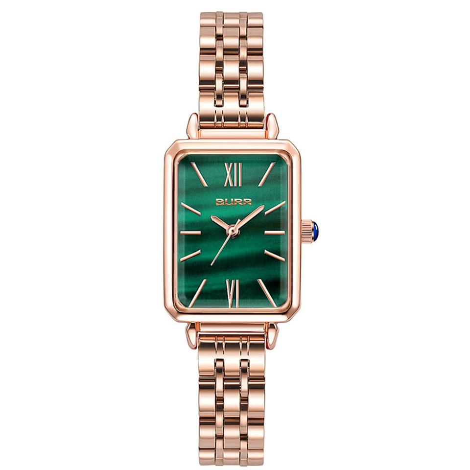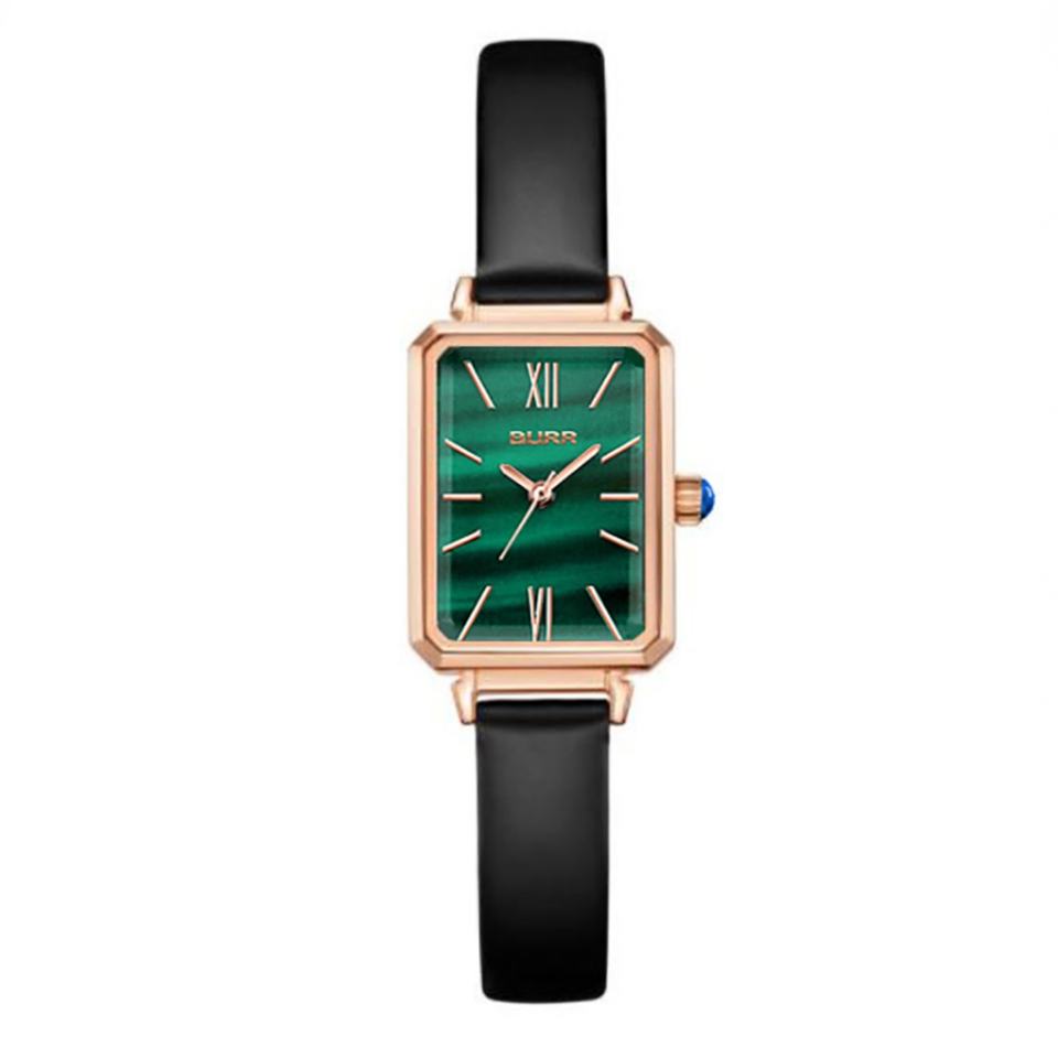 OEM ODM New Arrival Minimalist Wrist Watches for Girls Square Green Dial Analog Quartz Watch Slim Black Leather Band