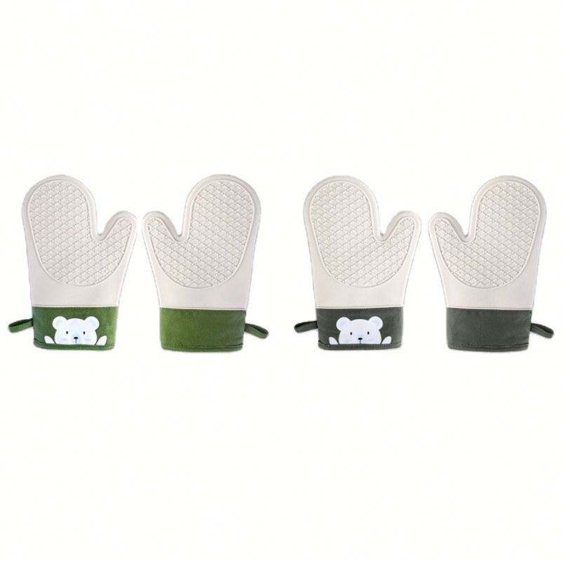 OEM ODM New Silicone Cotton Cloth Gloves Twill Double Microwave Oven Heatproof Gloves Kitchen Baking BBQ Heat Insulation Mitts