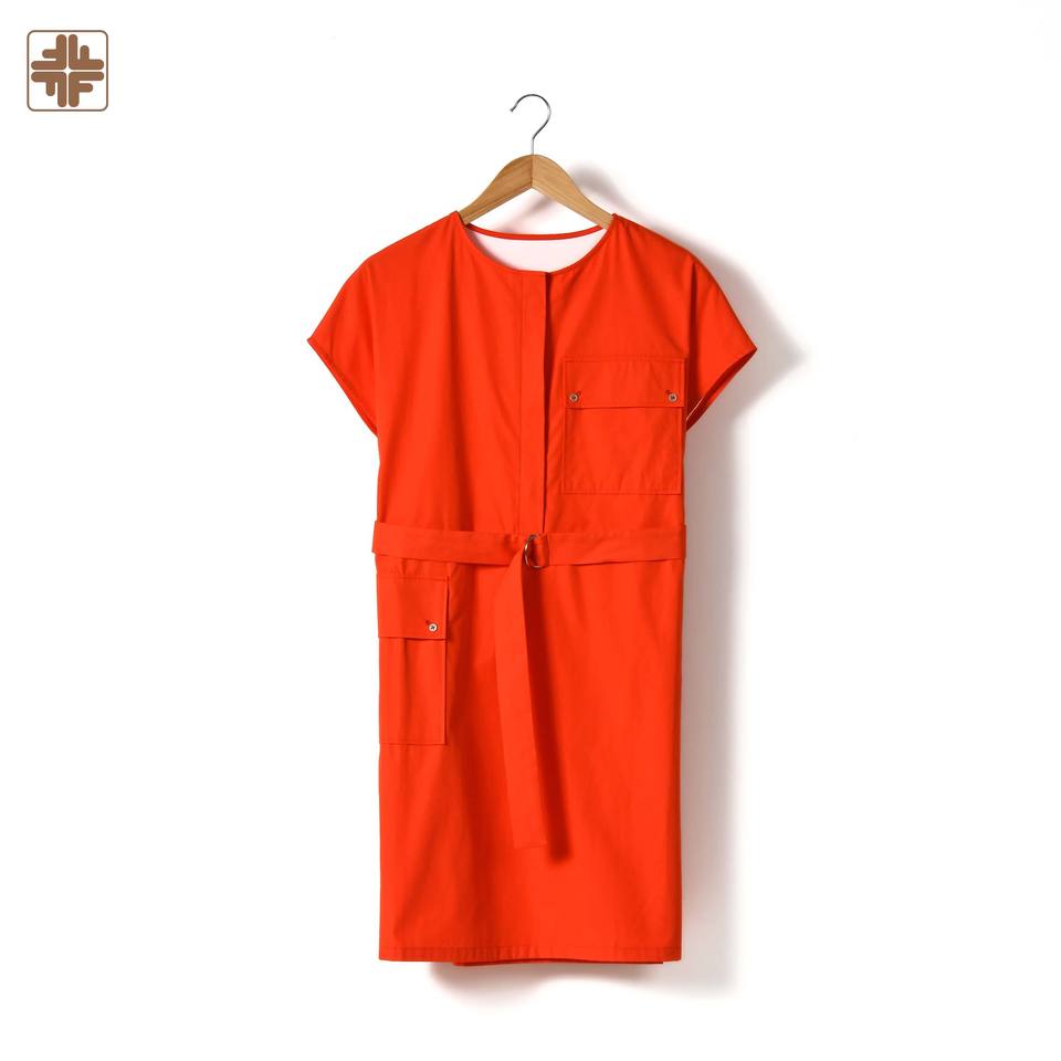 OEM ODM Organic Cotton Round Neck Fitted Short Dress With Pockets