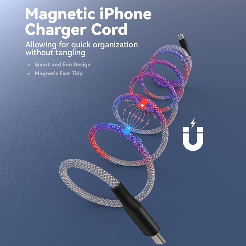 OEM ODM PD 100W Type C to Type C Magnetic Fast Charging Cable 750Gs and Easy Storage