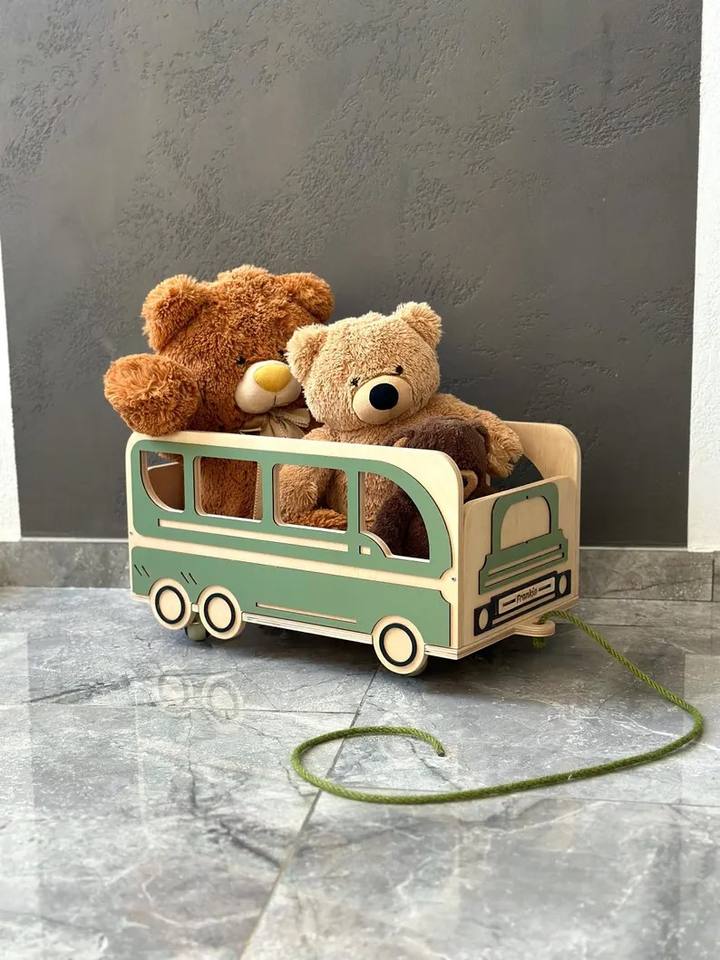 OEM ODM Personalized Pink Bus Montessori Furniture Nursery Toy Cart Rolling Wheels Black Friday Gift Idea Toy Chest Organizer