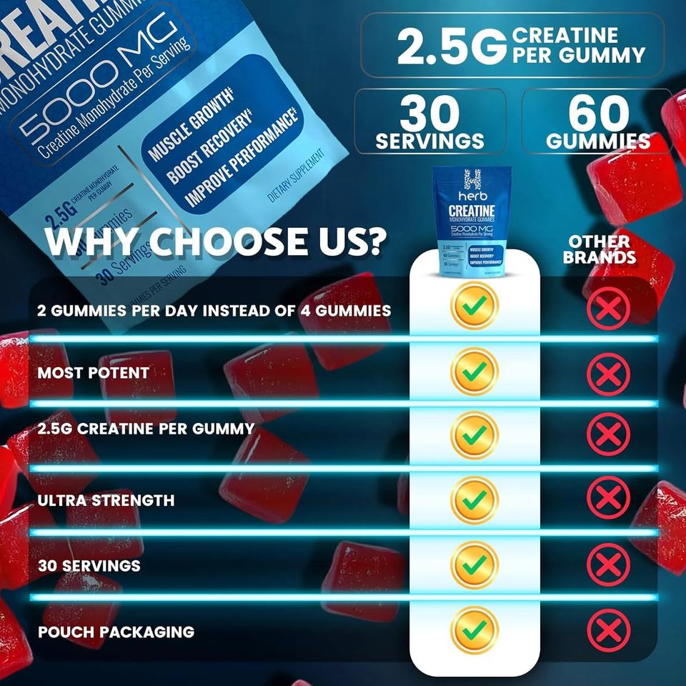 OEM/ODM Private Label Pre Workout Supplement Creatine Monohydrate Energy Gummy Creatine Gummies for Muscle Growth Gummy