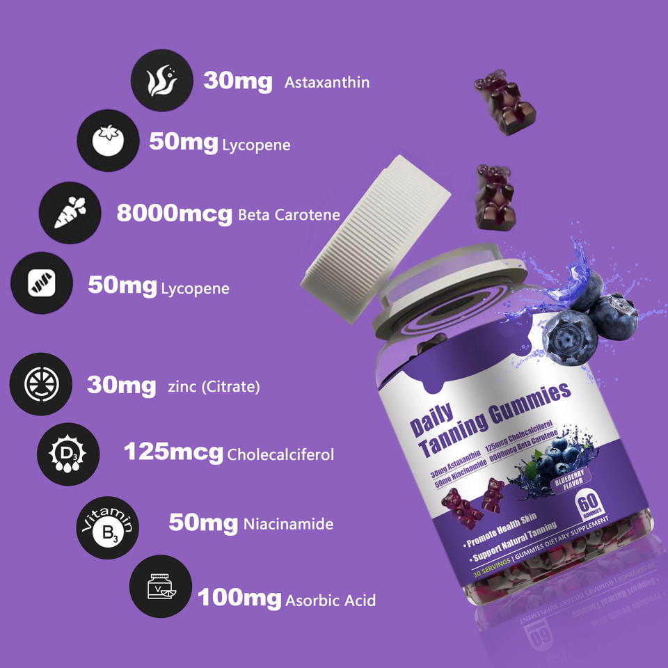 OEM/ODM Private Label Adult Skin Care Supplement Vegan Collagen Vitamin C Zinc Natural Gummy Candy Daily Tanning Astaxanthin
