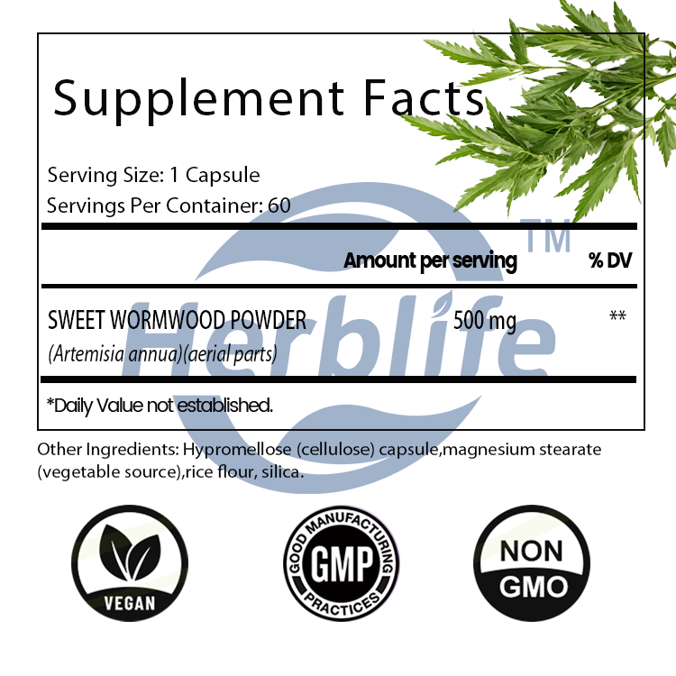 OEM ODM Private label Wormwood Capsules - Digestive Health Support, Antioxidant, Overall Health Support, Vegan NO-GMO