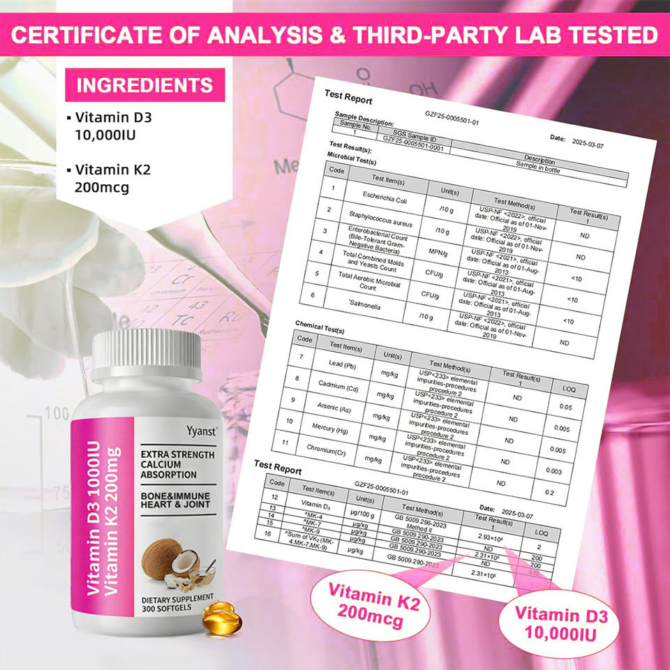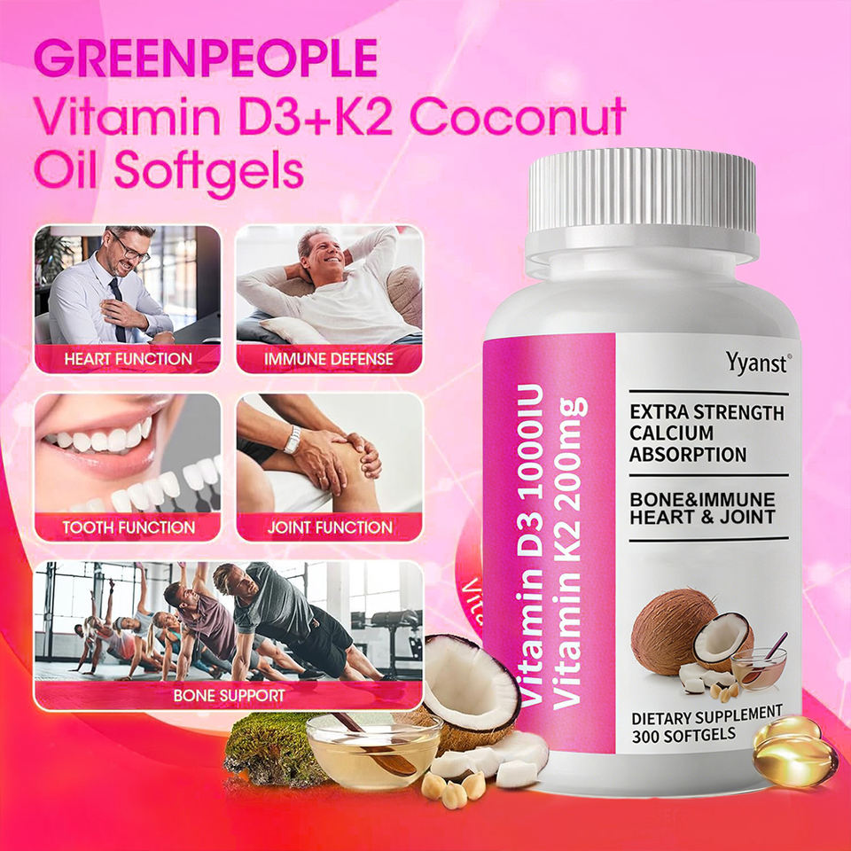 OEM/ODM Pure Vegan Essence Softgel Capsules Support Bone Heart Health Vitamin D3 K2 Adult Use Low-Fat Extra Strength Calcium