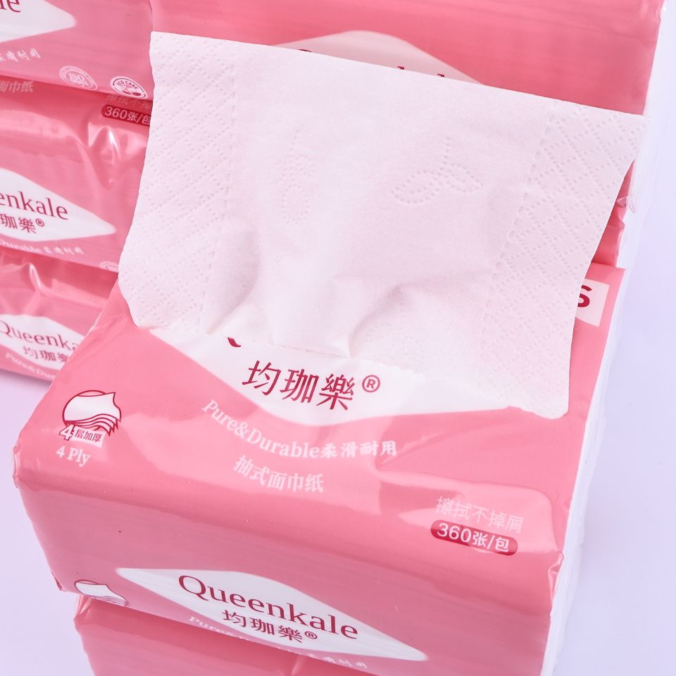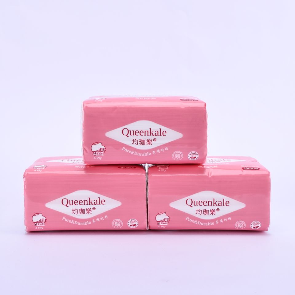 OEM/ODM Queenkale 100% Virgin Wood Pulp Home Use Facial Tissues Custom Logo 2/3/4-Ply Tissues