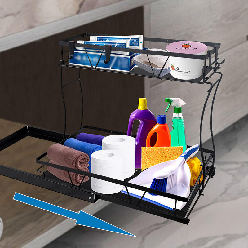 OEM&ODM Under Sink Organizers and Storage Pull-Out Cabinet Organizer 2-Tier Under Sink Rack With Sliding Storage Drawer