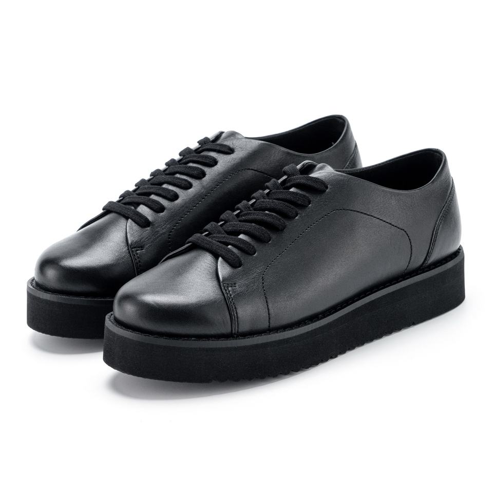OEM ODM Unisex Stylish Black Leather Platform Sneakers With Clean Stitching Women's Lace Up Shoes Ladies Footwear Made in BD