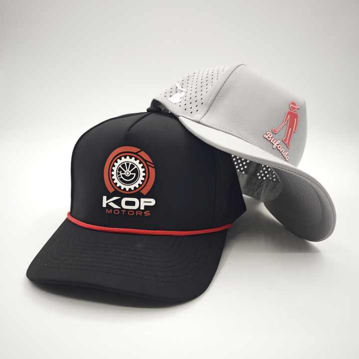 Logo position:brim/visor, front panel, Left panel, Right Panel, back curved part