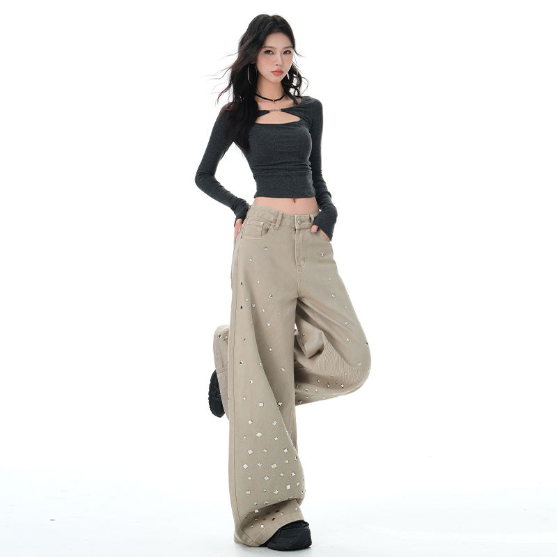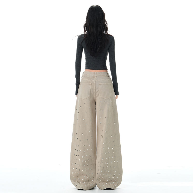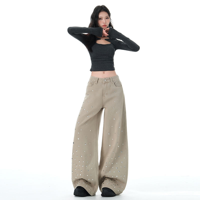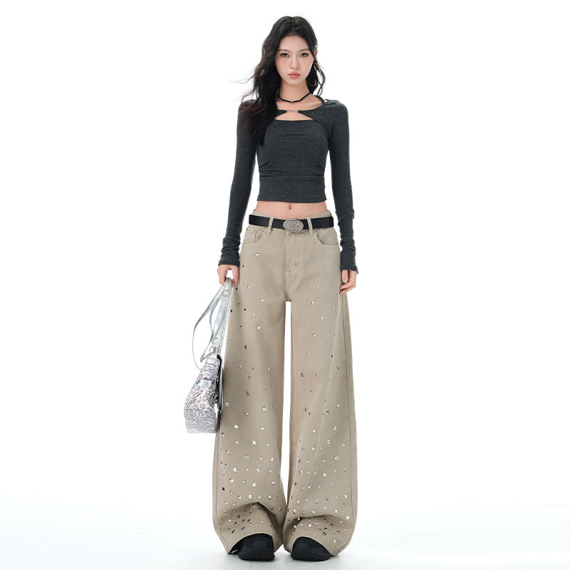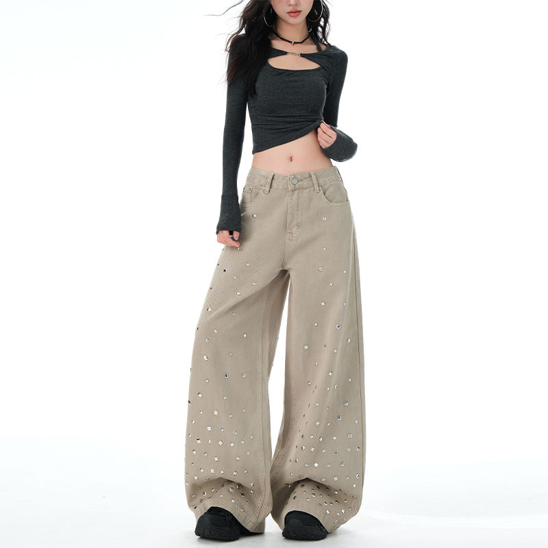 OEM/ODM Wholesale Women's American Vintage Summer Flared Trousers Distressed Embroidered Stretch Comfort Jeans Denim Wide Leg
