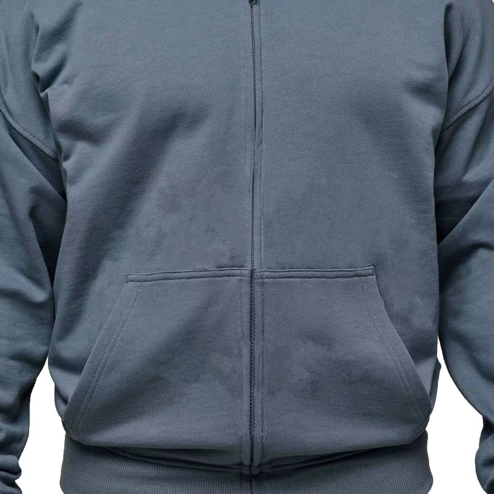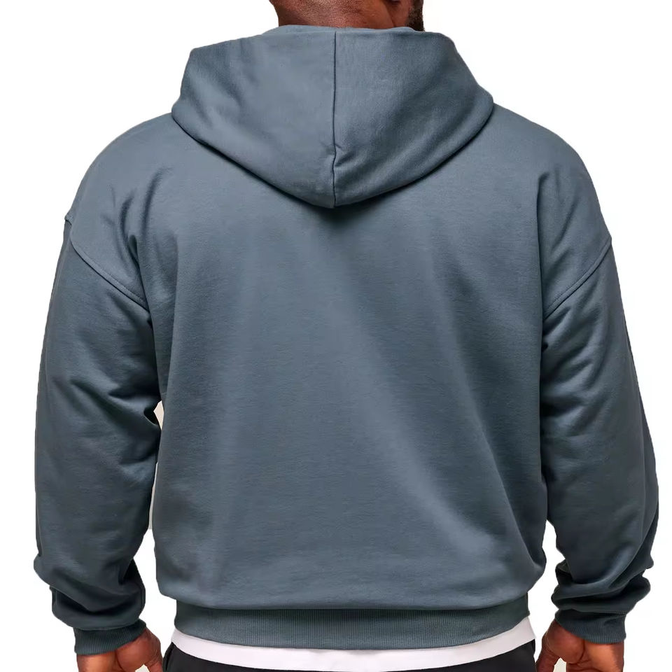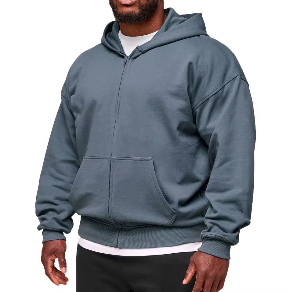 OEM ODM Winter Embroidered American Loose Solid Color Fleece Thickened Zipper Men's Hoodie Street Casual Drop Shoulder Oversized