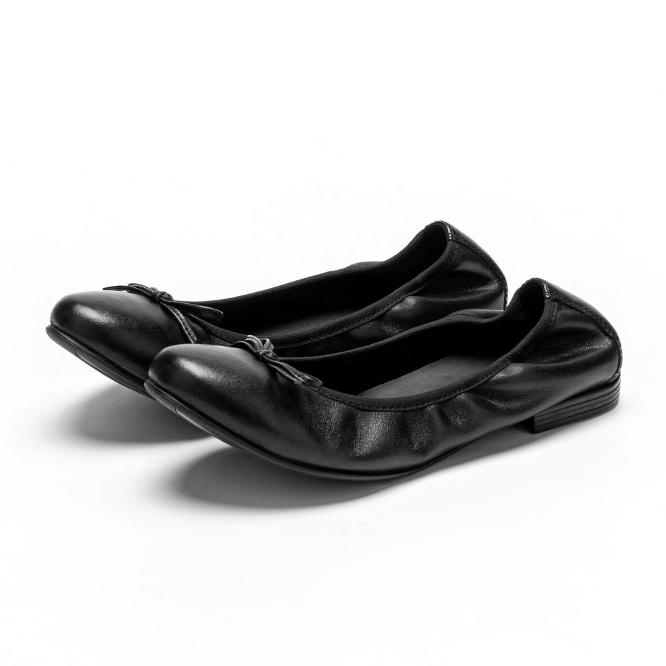 OEM ODM Women's BLACK Nappa Leather Round Toe Flat Slip-On Foldable Shoes Ballerinas Work Shoe Ladies Footwear Made in BD