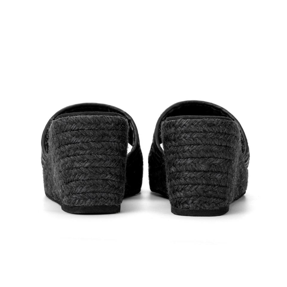 OEM ODM Women's Black Leather Woven One Strap Wedge Espadrilles Open Toe Spring Footwear Made in Bangladesh