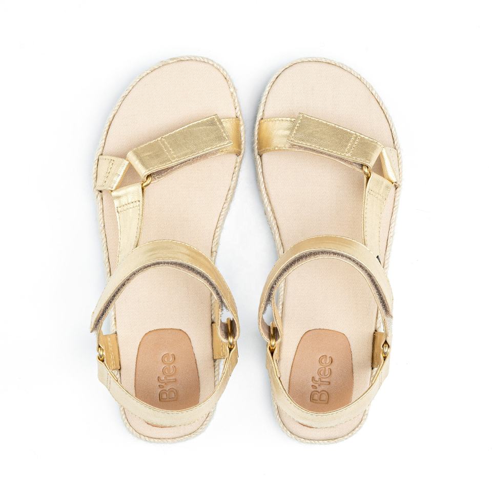 OEM ODM Women's EVA Jute Braid Sole Gold Flat Sandals Hook Loop Fastener Casual Summer Shoes Ladies Footwear Made in BD