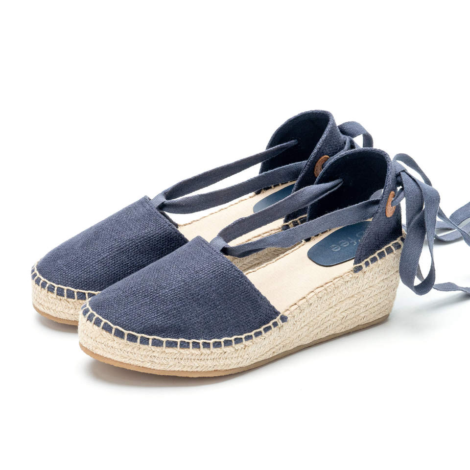 OEM ODM Women's Navy Jute Upper EVA Jute Braid Sole Summer Wedge Sandals Casual Espadrilles Made in BD