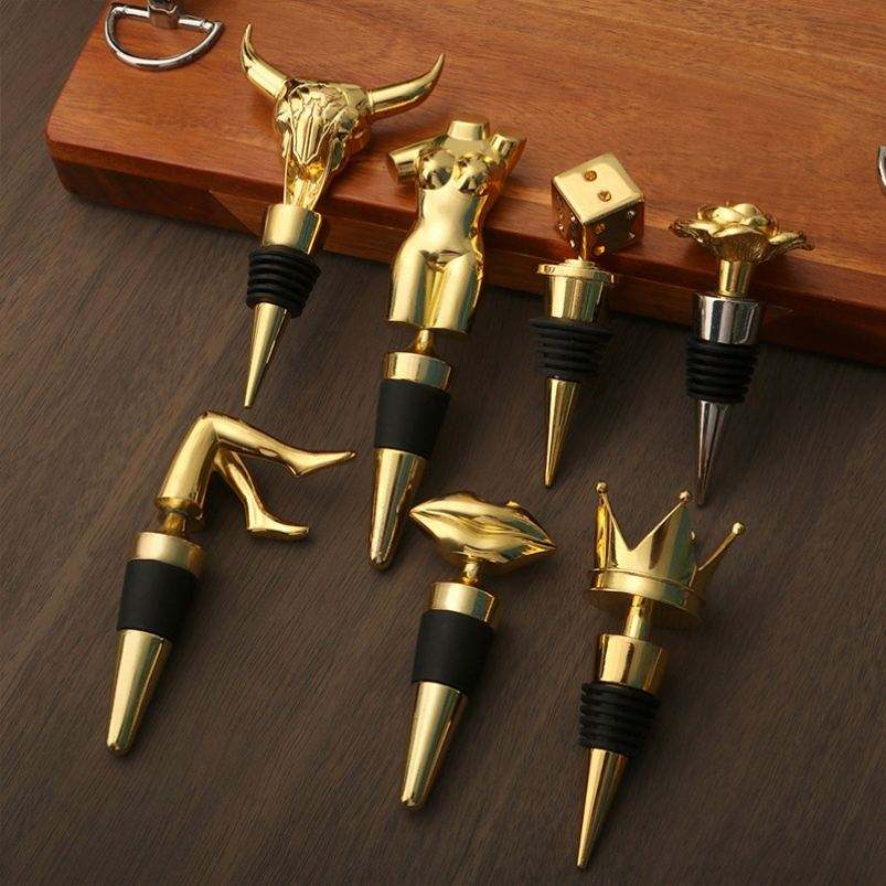 OEM ODM Zinc Alloy Three-dimensional Wine Stopper Custom Creative Personality Rose Crown Cow Shape champagne Metal Wine Stopper