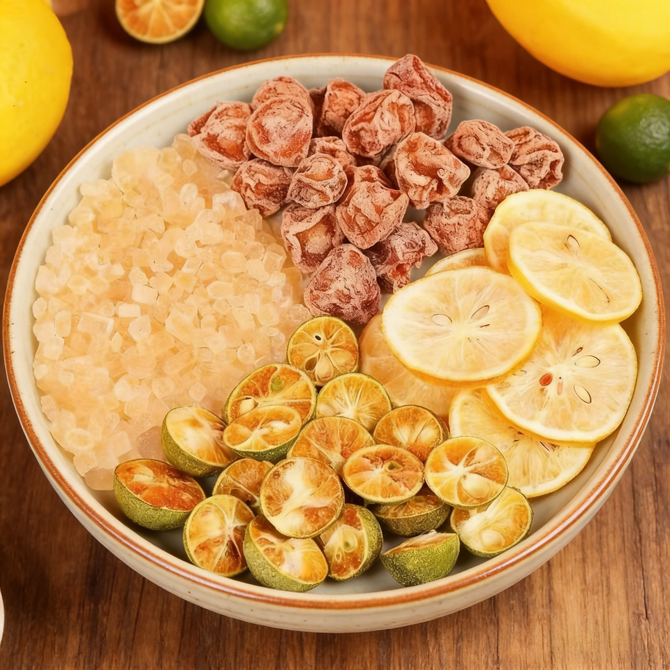 OEM Organic Lemon Kumquat Preserved Plum Tea Dried Fruit Herbal Infusion Salty Sour Sweet Throat Soothing & Digestive Aid Bagged