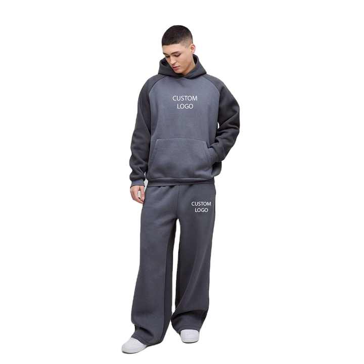 OEM Oversized Color Block Raglan Tracksuit Men Drop Shoulder Box fit Heavyweight 100% Cotton Raglan sleeves Hoodie & Sweatpants