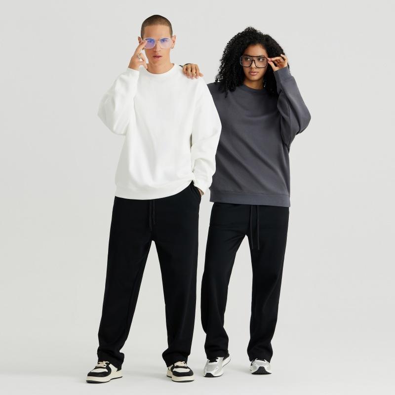 OEM Plush Jogger Hoodie Wholesale High Quality Plain Dyed White Crewneck Cotton
