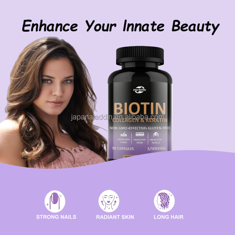 OEM Premium Biotin 10000mcg Capsules Gluten Free & Non-GMO Supports Hair Skin & Nails Health Supplement for Women & Men