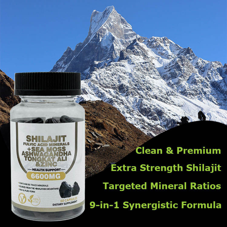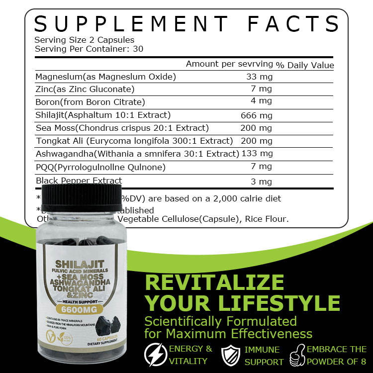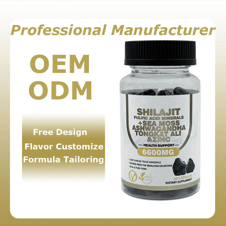 OEM Private Label 8 in 1 Shilajit Capsules with Rhodiola Rosea Ginseng Ashwagandha Nutritional Supplement