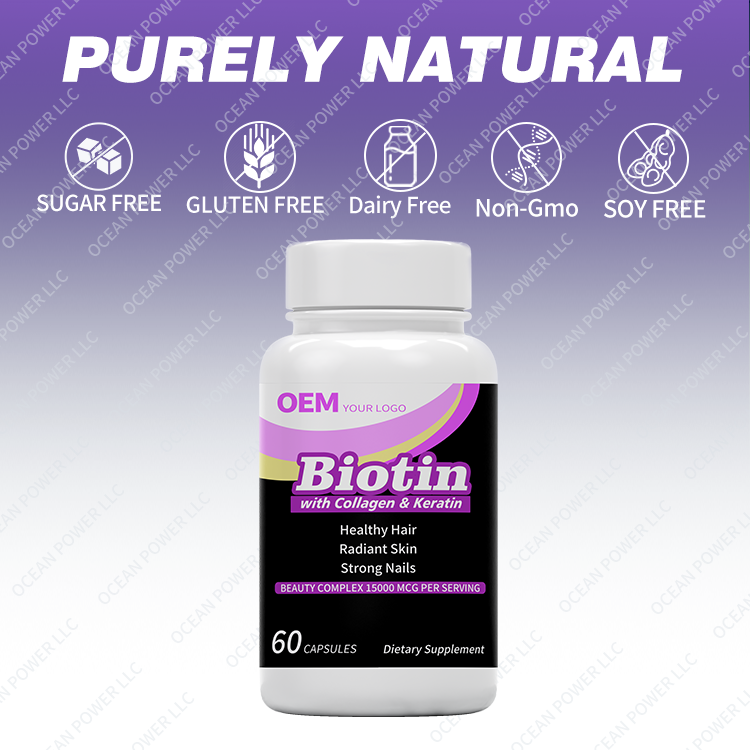 OEM Private Label Biotin Capsules 5000 Mcg 10000mcg 25000mcg Vitamins Supplement With Keratin Collagen for Hair Growth