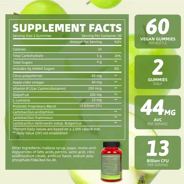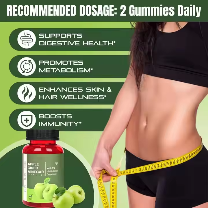 OEM Private Label Vegan Dietary B12 Multivitamin Apple Cider Vinegar Gummies Supplement for Adult Support Digestion