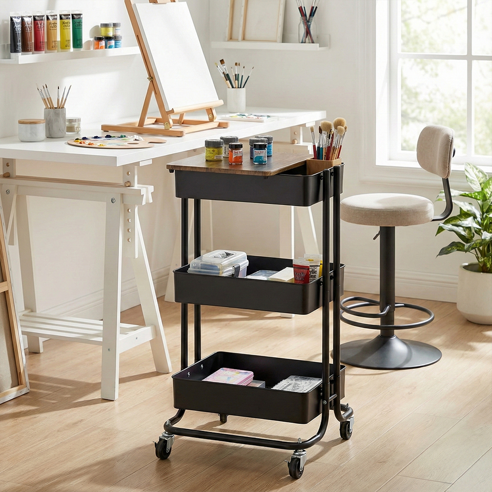 Home Storage Shelf Wholesale Taiwan Home Storage Furniture Manufacturer MIT Housewares Household TIER Rolling Metal Storage Cart