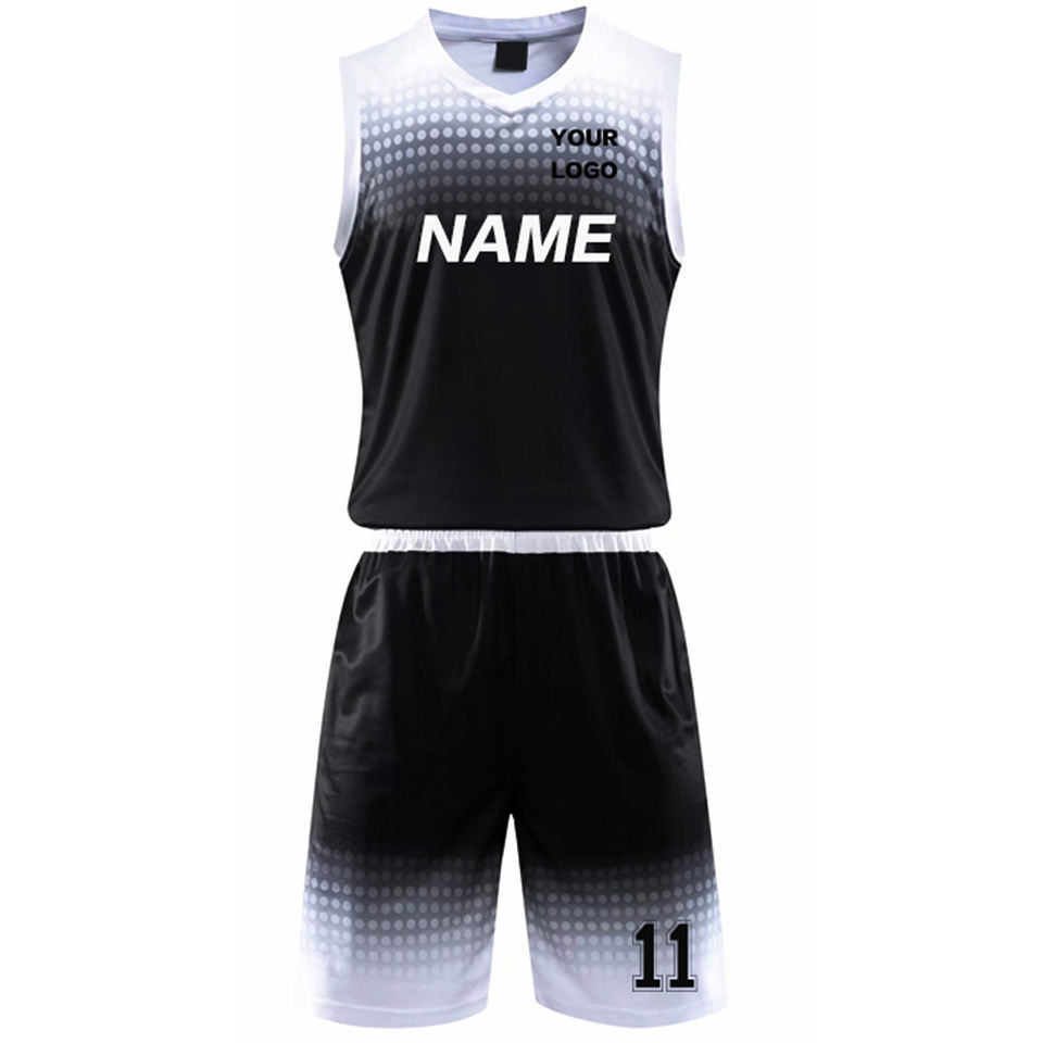 Custom Summer Printed Black White Gradient Basketball Uniform Set Sleeveless Jersey and Shorts with Name Number Team