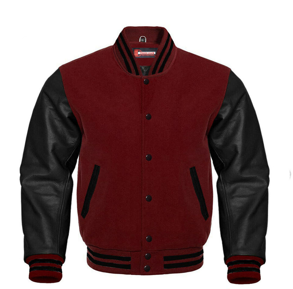OEM Service Custom Embroidered Logo Black/Red Varsity Jacket Comfortable Professional Design Stand Collar Canvas for Spring